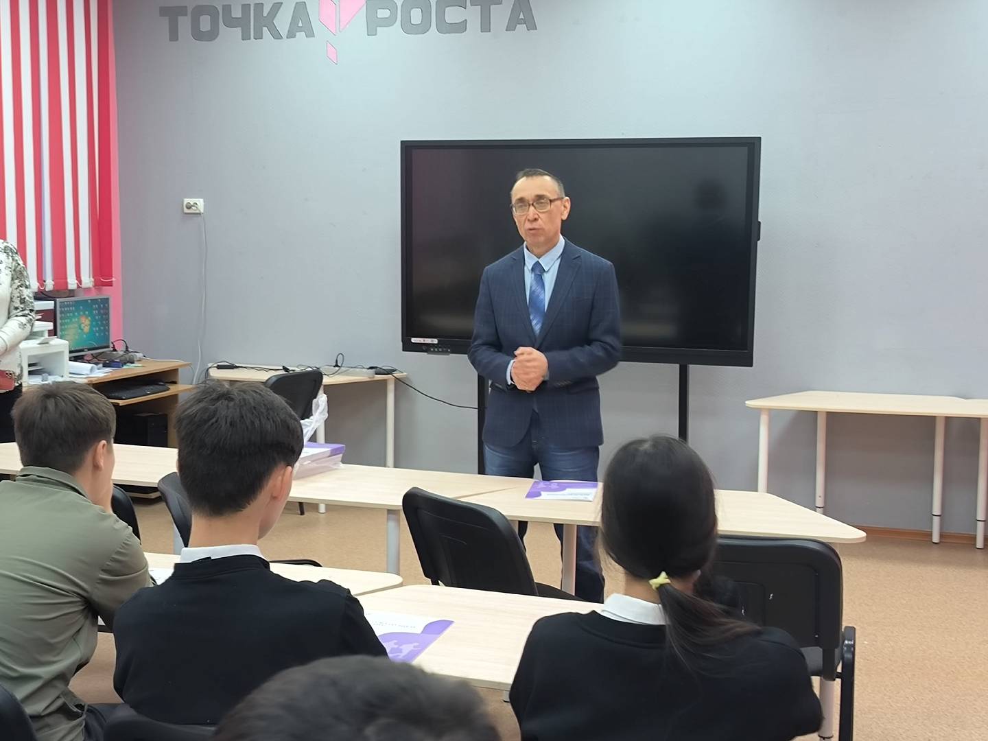 Сегодня в центре ,,Точка роста,, школы прошла встреча старшеклассников с начальником управления Пенсионного фонда в Федоровском районе Ахмеровым С.Т.